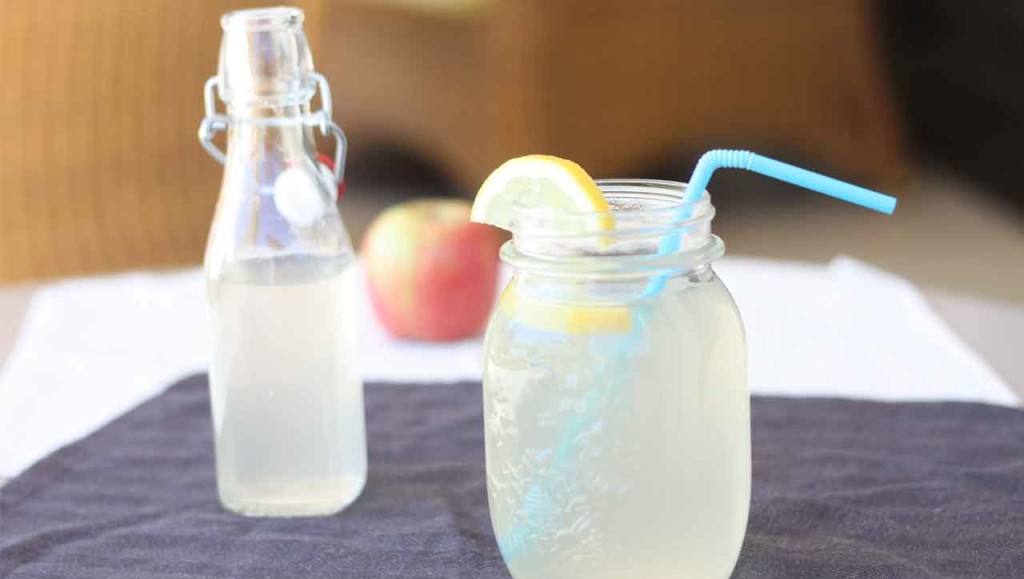Wasser, Apfelessig, Zitrone und etwas Honig – fertig ist die Limonade