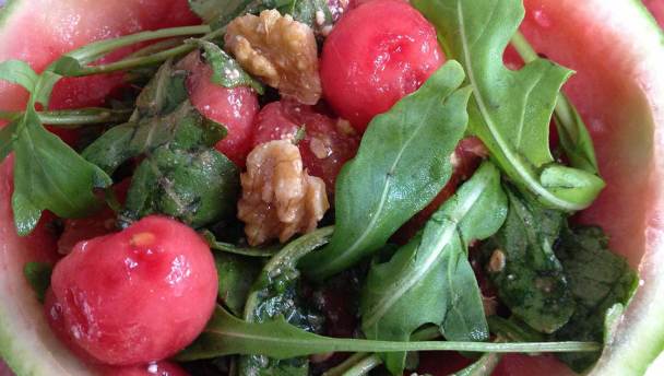Das Rezept: Rucola Salat mit Wassermelone und Walnüssen